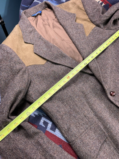 I believe this jacket was made by Pendleton. There are several variations of this jacket. The listing below was found after searching for a few months. It has the same three buttons at the wrist and large front pockets. The jacket sometimes appears beige and other times gray in the series. Interestingly, the eBay listing photographs as both.